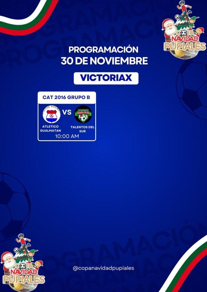 El sábado 30 de noviembre se disputará un solo partido entre los equipos de Atlético Gualmatan y Talentos del Sur de Ipiales en la categoría 2016 Grupo B