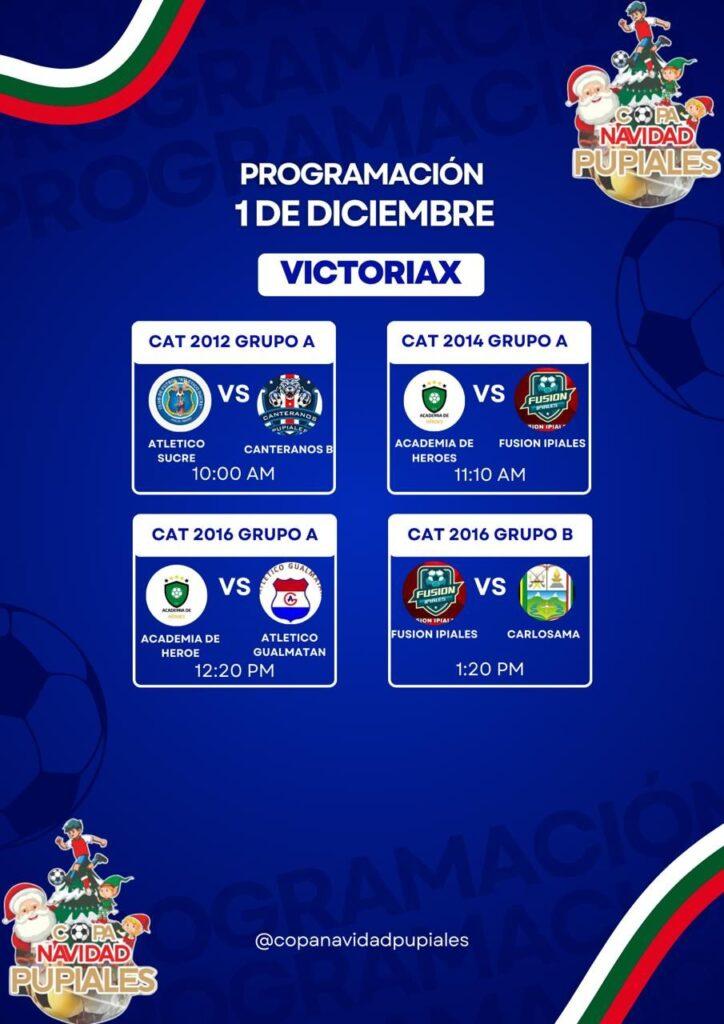 Con un total de ocho partidos continúa este fin de semana la programación oficial de la Copa Navidad de fútbol grama en sus diferentes categorías, evento que se juega en el municipio de Pupiales teniendo como escenarios El Centro Recreacional y empresarial Oro verde y la cancha Victorias