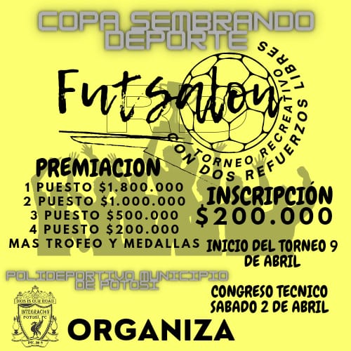 Un gran evento del fútbol de Salón a nivel recreativo se disputará en el municipio de Potosí a principios del mes de abril con presencia de más de 20 equipos de la Exprovincia de Obando.