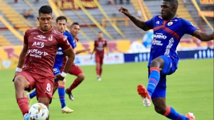 El equipo nariñense tuvo tres claras ocasiones para anotar en el primer tiempo: – Remate de Gilberto García que el arquero William Cuesta atajó. – Duvier estrelló un cabezazo en el vertical izquierdo. – Un mano a mano de Facundo Boné.